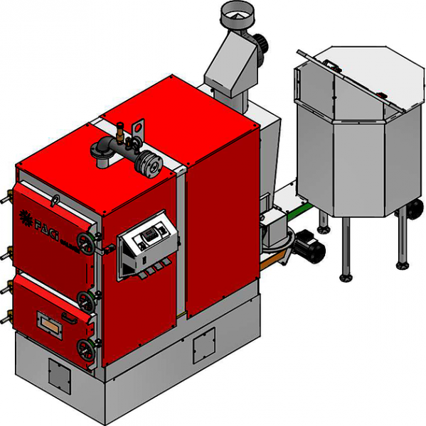Котел FACI FSS на щепе и биомассе изготовлен из котловой стали большой толщины и использует в качестве топлива древесные отходы длиной в несколько сантиметров, загружаемые автоматически. Используемое топливо может быть скомпоновано из материалов различного происхождения: измельчённые ветки деревьев, древесные отходы и биомасса лесопильного производства. Помимо жилых помещений, котлы на щепе в особенности подходят для отопления помещений средних или больших размеров, таких как: производственные объекты, жилые дома, гостиницы, школы, больницы и торговые центры. Котел может работать на твёрдом размельчённом топливе и на дровах и может быть использован одновременно с другими источниками тепла, такими как: камины, солнечные панели, газовые котлы, термопечи и т.д.
