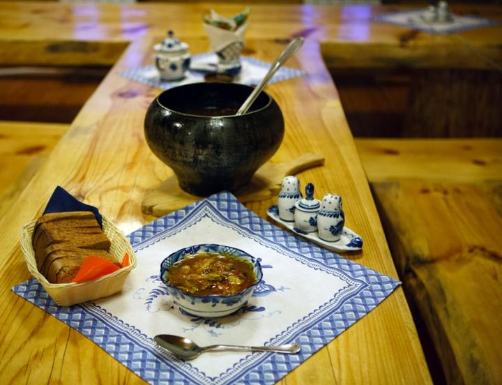 Невозможно устоять перед ароматом наваристых русских щей, которые только что вынули из печи! А свежие булочки, еще горячие и пышащие сдобным духом! Каша из печки, сырники из домашнего творога со сметаной, оладушки, жареная картошечка с грибами и многое другое — отведайте блюда исконно русской кухни, приготовленные заботливыми руками поваров базы отдыха «Дубки». Все блюда, которые мы предлагаем своим гостям готовятся из натуральных фермерских продуктов. Свежее мясо, сочные овощи и фрукты, жирное молоко — производятся и выращиваются в экологически чистых условиях, поэтому богаты полезными веществами и витаминами. Приготовление еды происходит в настоящей русской дровяной печи, что насыщает ее особым вкусом и ароматом. Фотографии готовых блюд можно посмотреть .