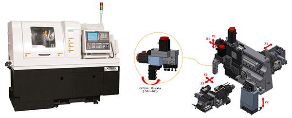 В частности, на модели XD20V можно установить до 29 позиций различного инструмента, выполнять операции глубокого сверления глубиной до 110 мм, а при использовании специальной оснастки появляется возможность сверлить под углом. Кроме того, на станках можно обрабатывать различной сложности канавки, лыски, выполнять операции с использованием винтовой интерполяции, поворотных осей С1, С2 и многое другое.