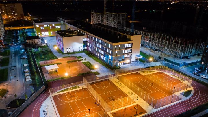 Спортивный блок школы включает сразу пять залов, один из которых предназначен для хореографии и оснащен зеркалами во всю стену, а также станками. Остальные четыре физкультурных зала оборудованы гимнастическим и спортивным инвентарем. Для большей безопасности стены обиты матами, а на полу положено специальное нескользящее покрытие регупол. Заниматься физкультурой дети смогут не только в здании, но и на улице – на пришкольной территории проложены беговые дорожки, построены площадки для волейбола, баскетбола, тенниса и футбола.