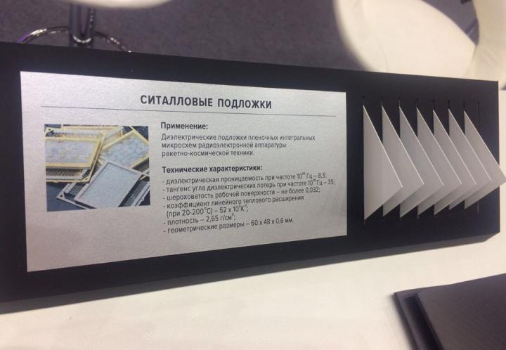 Созданные обнинскими учеными в рамках государственной программы «Импортозамещение» ситалловые подложки для изготовления пленочных интегральных микросхем впервые были продемонстрированы на объединенном стенде Госкорпорации Ростех на международной выставке.