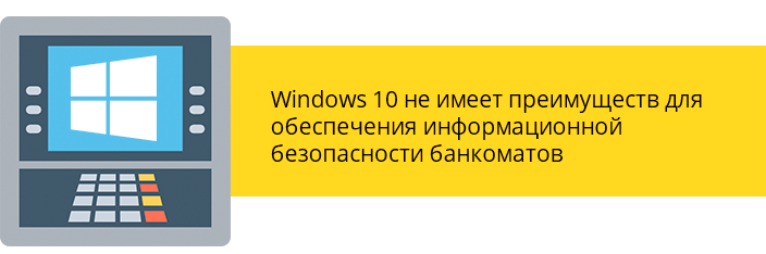 Говоря о преимуществах Windows 10 по сравнению с предыдущими версиями, часто упоминается улучшенная защита от кибератак. Уважаемые институты, например, ATMIA, международная ассоциация владельцев банкоматов, для стимулирования миграции устройств самообслуживания на новейшую операционную систему.