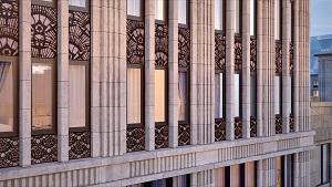 Компания «Галс-Девелопмент» приступила к фасадным работам и монтажу светопрозрачных конструкций в корпусе апартаментов городского квартала «Искра-Парк». Общая площадь фасадов в 10 секциях корпуса составит 37 534 тыс. кв. м. Архитектурный проект квартала в неоклассическом стиле советского арт-деко разработан в бюро SPEECH. Фасады жилого корпуса будут украшены декоративными элементами, индивидуальными для каждой секции, которые повторятся в отделке входных групп. Узоры декоративных решеток, разработанные дизайнерами «Студии Артемия Лебедева», будут отражать достижения СССР в период 40-50-х годах ХХ века в таких сферах, как машиностроение, энергетика, горнодобывающая промышленность, космическая индустрия, сельское хозяйство и строительство.