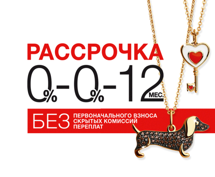 Компания «Русское Золото» и ОТП банк сделают вашу мечту вполне осуществимой. Рассрочка на 12 месяцев с нулевой процентной ставкой без комиссий, переплат и, главное, без первоначального взноса – это простой и выгодный способ стать обладателем приглянувшегося ювелирного изделия прямо сегодня. Никакой нагрузки на семейный бюджет и переживаний – украшение можно приобрести уже сейчас, не заплатив при этом ни копейки!