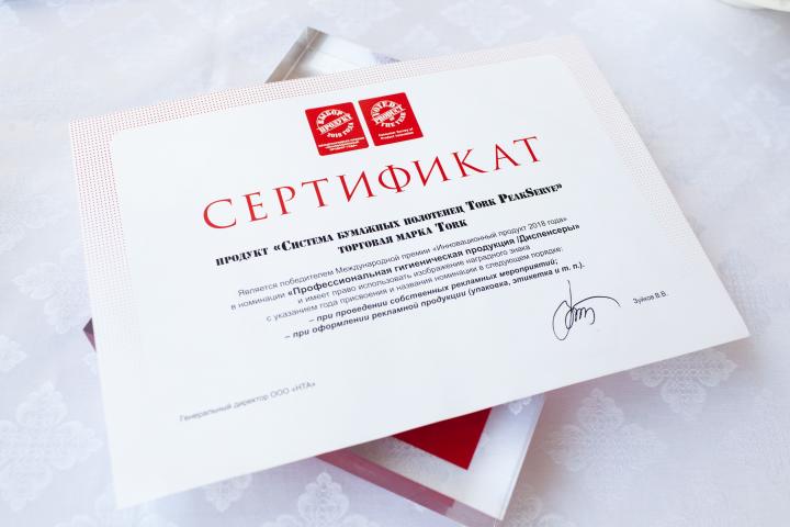 Для торговой марки Tork эта премия стала уже второй наградой, полученной за инновационность системы бумажных полотенец Tork PeakServe®  в России. В декабре 2017 года продукт был удостоен премии «Время инноваций».