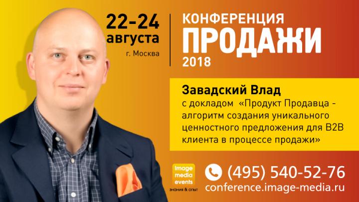 С таким докладом выступит Влад Завадский на общероссийской практической конференции «Продажи-2018», которая пройдет в Москве 22-24 августа.