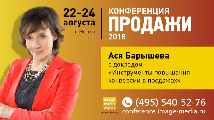 С таким докладом выступит Ася Барышева на общероссийской практической конференции «Продажи-2018», которая пройдет в Москве 22-24 августа.