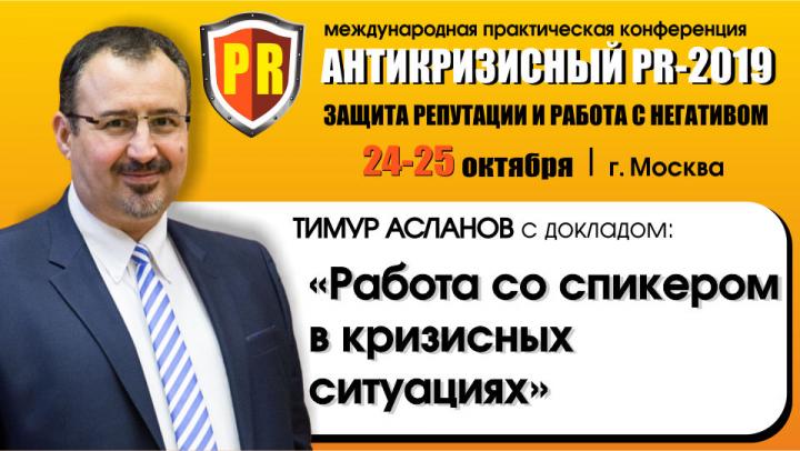 С таким докладом выступит главный редактор журнала «Пресс-служба» Тимур Асланов на международной специализированной тематической конференции «АНТИКРИЗИСНЫЙ PR-2019: защита репутации и работа с негативом», которая состоится в Москве 24-25 октября.