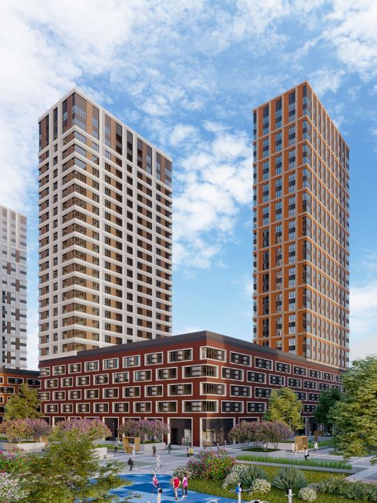 Первые этажи отводятся под коммерческие помещения площадью от 10 кв.м до 1111 кв.м. Все эти объекты имеют свободную планировку правильной формы, передаются покупателям с отделкой shell & core и имеют высокие потолки до 6,55 м, возможность размещения вывески, витринное остекление более 3 м в высоту. По прогнозам, активный пешеходный трафик составит более 15 000 жителей.