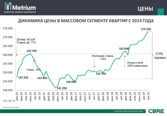 Основными причинами столь внушительной ценовой динамики стал высокий спрос (в 2016-2018 гг. число сделок с новостройками нарастало, преодолев докризисные показатели), рост себестоимости строительства, а также реформа долевого строительства.