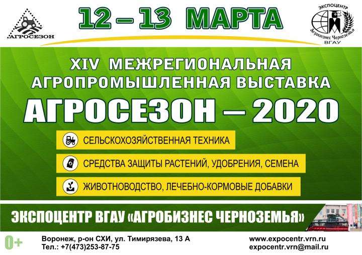12-13 марта 2020 года в Экспоцентре «Агробизнес Черноземья» Воронежского государственного аграрного университета имени императора Петра I состоится XIV межрегиональная агропромышленная выставка «АГРОСЕЗОН-2020. Современные техника и технологии в земледелии и животноводстве».