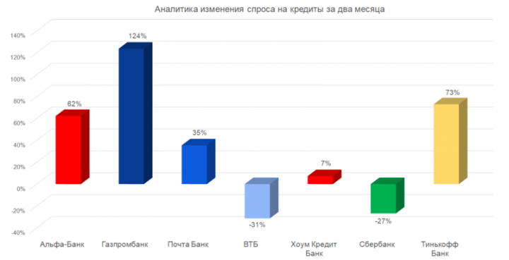 Введение вызванного пандемией коронавируса режима самоизоляции серьезно отразилось на экономике страны. Банковская сфера не стала исключением из этого правила. Давайте рассмотрим, как изменился спрос на кредиты в крупнейших банках страны за последние два месяца.