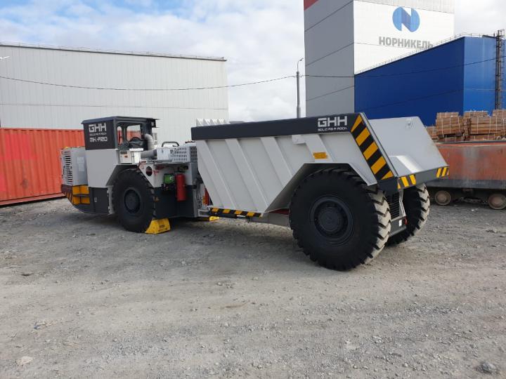 Немецкая GHH-Fahrzeuge — новинка в линейке используемых самосвалов. Модель МК-А20 обладает компактными габаритами (ДхШхВ: 9,4 м х 2,2 м х 2,55 м) и, благодаря шарнирному соединению моторной и грузовой рамы, большой манёвренностью: при вращении рулевого колеса полурамы складываются на угол до 42 градусов, обеспечивая радиус поворота в 8 метров, что делает её прекрасной альтернативой при проходке подземных выработок и туннелей малого и среднего сечения.
