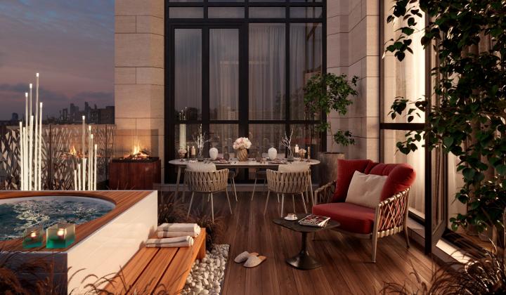 Конечно, в городской черте опыт совершенно другой: свежего воздуха немного, но за период самоизоляции многие научились ценить и городские ветра. В остальном терраса в пентхаусе ни в чем не уступает по функциональности террасе в загородном доме. Здесь можно обустроить обеденную зону, тренажерный уголок, место для загара, зимний сад, организовать вечеринку и т.п. Именно пентхаусы часто отличаются наличием больших террас, пригодных для самых разных активностей.