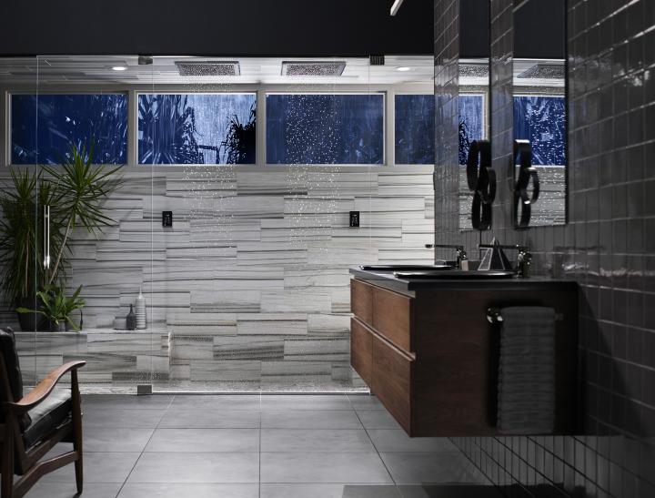 Дискуссия вокруг предлагаемой компанией Kohler «Концепции года» сосредоточена на нескольких полезных категориях продукции, включая «умную» сантехнику, бесконтактные смесители и матовое чернение, которые способствуют выражению элементов благополучия внутри такого помещения.