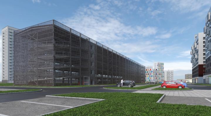 Многоуровневый паркинг достигнет площади 10 тыс. кв. м. Здание рассчитано на хранение 331 автомобилей, в том числе 15 мест зарезервировано для машин маломобильных граждан. Фасад паркинга будут украшать перфорированные металлические панели медного цвета – они создадут визуальное ощущение легкости довольно масштабного строения, а также позволят поддерживать оптимальный уровень освещенности и вентиляции внутренних помещений. В здании две однопутные рампы, а связь между этажами обеспечат лифты и лестницы. Ввод в эксплуатацию намечен на май 2021 года.