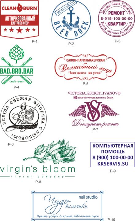 Сегодня основными направлениями, в которых наши новые и постоянные клиенты предпочитают заказать рекламный штамп, являются: