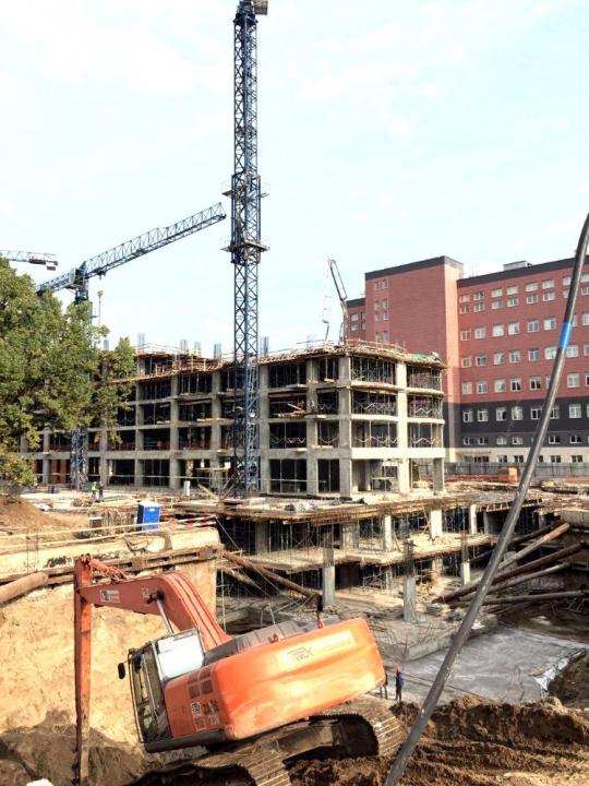 Демонтаж зданий и сооружений-компания Техоптимум. Гусеничный экскаватор Hitachi ZX 330 с длинной стрелой компании Техоптимум.