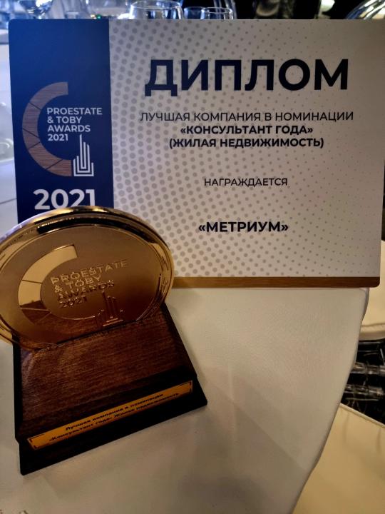 Компания «Метриум» вновь завоевала звание лучшей в области консалтинга на рынке жилой недвижимости. В Москве прошло награждение премией PROESTATE & TOBY Awards, которая состоит из двух кластеров номинаций: ProEstate Awards и TOBY Awards (The Outstanding Building of the Year — «выдающееся здание года». Премия анализирует основные сегменты российского рынка недвижимости — жилую и коммерческую недвижимость, а также уделяет внимание проектам редевелопмента.