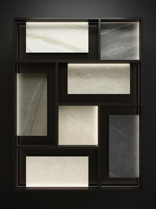 Долговечность и простота в уходе, свойственные натуральной поверхности, делают коллекцию безупречным вариантом для оформления любых пространств: от гостиных до ванных комнат в жилых или общественных контекстах.