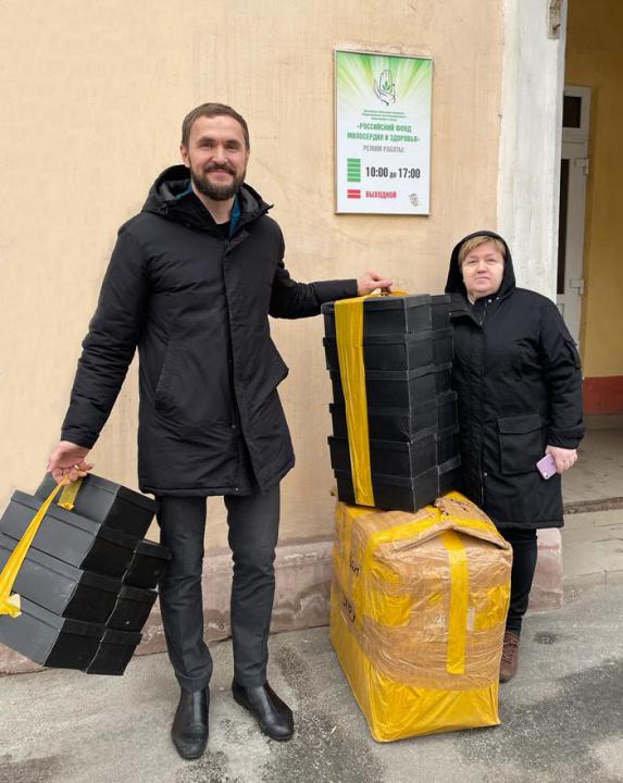 Ярославские энергетики передали гуманитарную помощь в отделение Общероссийского благотворительного общественного фонда «Российский фонд милосердия и здоровья» — сменную одежду для переселенцев.