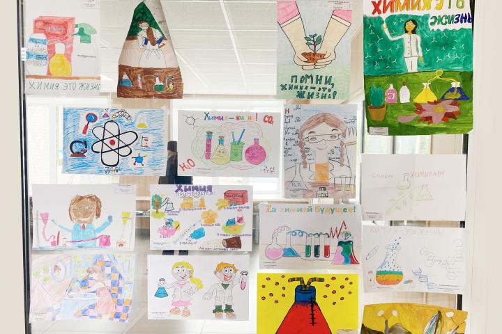 Выбрать лучшие рисунки было непросто, каждая работа яркая и непохожая на остальные. На бумаге изображены лаборанты, наблюдающие за реакцией разноцветных веществ в колбах, рабочие, стоящие у станков и пультов с мигающими лампочками, зеленые растения, химические элементы и многое другое.