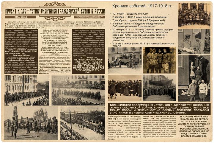 Плакаты содержат концентрированную информацию о людях, событиях, датах и фронтовой статистике Гражданской войны 1918-1922 гг.