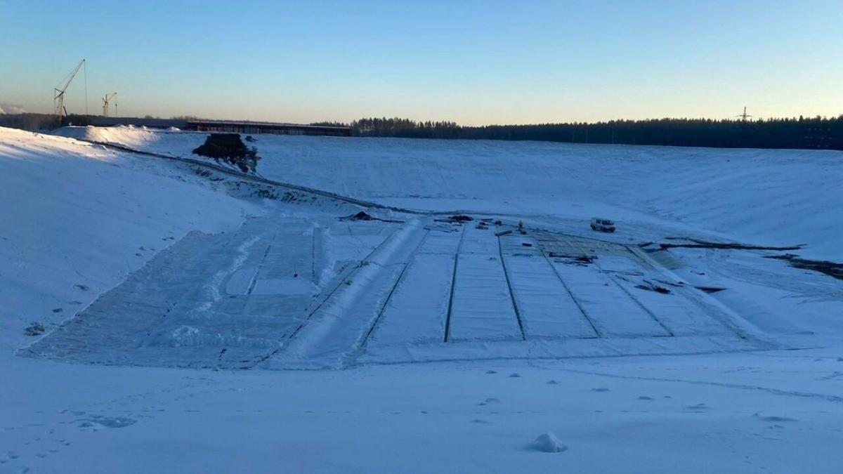 Рабочие уже подготовили котлован, возвели ограждающую дамбу и сделали нагорную канаву. Сейчас место будущего полигона ТКО оборудуют гидроизоляцией и дренажной канализацией.