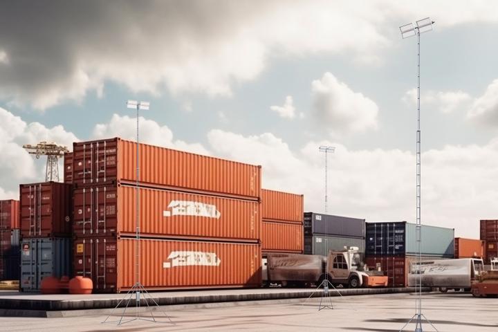 Установленные в терминале выдвижные опоры — особая разработка МСК «БЛ ГРУПП». Они предназначены для временного освещения больших открытых территорий или их участков - там, где есть необходимость в текущий период (в том числе и в условиях чрезвычайных ситуаций). В морском терминале это может быть открытый склад насыпных грузов. Данные опоры позволяют смонтировать осветительную установку в течение одного-двух часов. Они представляют собой телескопическую стойку с лебедкой. В сложенном состоянии перевозятся любым видом транспорта с грузовой платформой длиной от 6 м. На каждой опоре можно установить до 4 прожекторов.