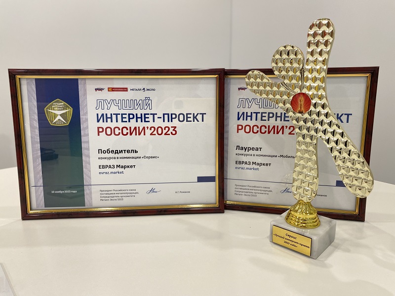 Ежегодная Неделя металлов в Москве принесла интернет-магазину ЕВРАЗ Маркета победу в номинации «Сервис» в конкурсе «Лучший интернет-проект 2023 года» и звание лауреата в номинации «Мобильность».
