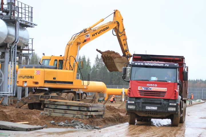 Компания Техоптимум-разработка котлована и вывоз грунта. Экскаватор Hyundai r 170 w-7 и самосвал IVECO TRAKKER 380 компании Техоптимум. www.tehoptimum.ru