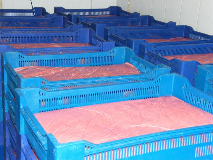 После расфасовки фарш помещается в специальные ящики под заморозку