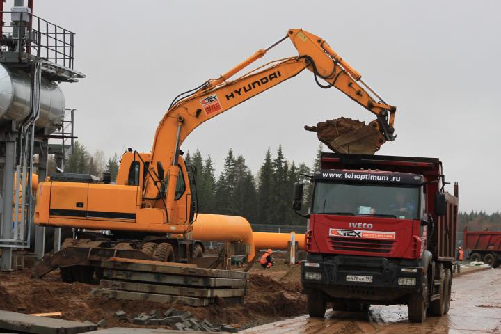 Компания Техоптимум-разработка котлована и вывоз грунта. Экскаватор Hyundai r 170 w-7 и самосвал IVECO TRAKKER 380 компании Техоптимум. www.tehoptimum.ru