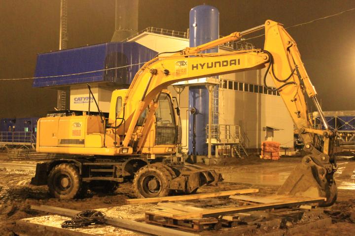 Компания Техоптимум--разработка котлована и вывоз грунта. Колесный экскаватор Hyundai r 170 w-7 компании Техоптимум. www.tehoptimum.ru