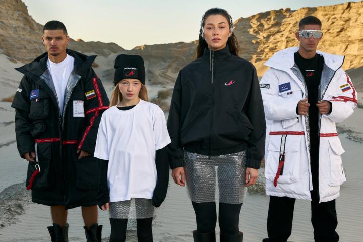 Женская линейка новой коллекции объединила технологичность и эстетику будущего. Главная модель — комбинезон, в котором женственность сочетается с трендами 2026 года: утончённый силуэт, множество функциональных карманов и акцентная фурнитура передают дух путешествий и свободы. В капсулу вошли также костюмы, куртки и худи, выполненные из премиальных тканей с инновационными утеплителями и защитой от влаги. Каждая деталь — от принтов с датами космических запусков до продуманной архитектуры кроя — напоминает, что мода тоже способна открывать новые миры.