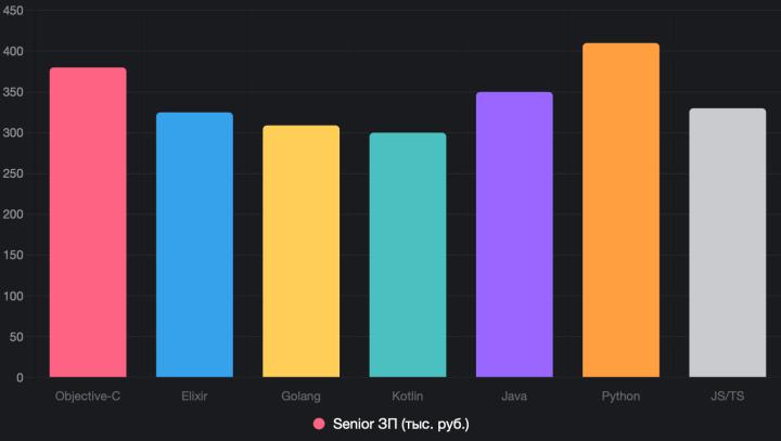 Python уверенно удерживает лидерство — за счёт взрывного роста AI-проектов. Java и JavaScript остаются «золотой серединой»: спрос стабилен, зарплаты устойчивы. Golang стремительно набирает популярность в инфраструктурных проектах и финтехе.