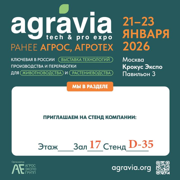 Принимаем участие в выставке АГРАВИЯ 2026 в Москве (21-23 января 2026 г.)