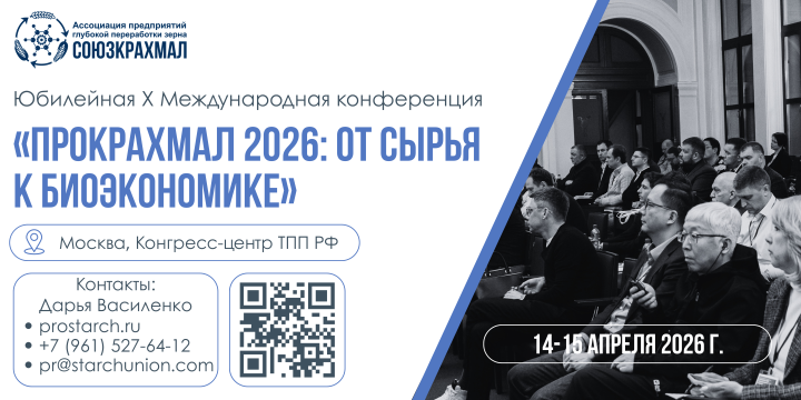 X Международная конференция «ПроКрахмал 2026: от сырья к биоэкономике» пройдет 14-15 апреля 2026 года