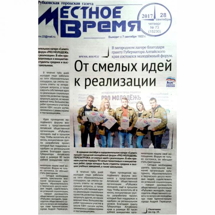 «Корпуса твои, окна, этажи и кабинеты, ты достоин первой полосы любой газеты!» - поется в гимне Алтайского государственного университета. Позитивные, яркие, жизнерадостные студенты Рубцовского Института, работавшие на форуме города «PRO МОЛОДЁЖЬ. Перезагрузка», стали медийным лицом этого мероприятия.