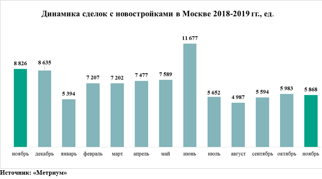 В ноябре в Москве было заключено 5,87 тыс. договоров участия в долевом строительстве (ДДУ), что на 2% меньше, чем в октябре, когда Росреестр по Москве зарегистрировал 5,98 тыс. сделок, подсчитали аналитики «Метриум». Однако по сравнению с ноябрем 2018 года (тогда было зафиксировано 8,8 тыс. сделок), спрос упал на 34%.