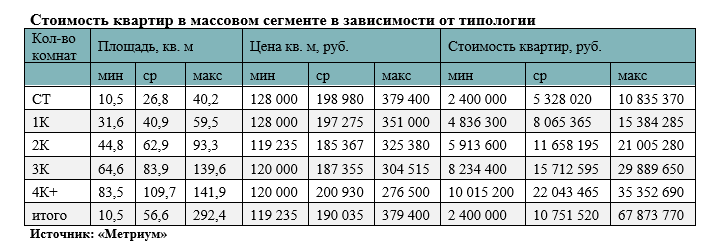 Благодаря высокому спросу средняя стоимость квадратного метра на первичном рынке жилья массового сегмента побила новый рекорд достигнув 190 тыс. руб. (+4,5% за квартала; +8,7% за 12 месяцев). Средний бюджет предложения увеличился до 10,7 млн руб. (+3,7% за квартал).