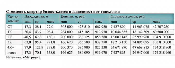 По данным компании «Метриум», в III квартале 2021 года на рынке первичной недвижимости бизнес-класса было представлено 86 жилых комплексов с общим объемом предложения около 11 130 квартир (общая продаваемая площадь 780,5 тыс. кв. м). В сравнении со II кварталом 2021 года количество реализуемых лотов увеличилось на 9,2%, а их общая площадь на 3,1%.