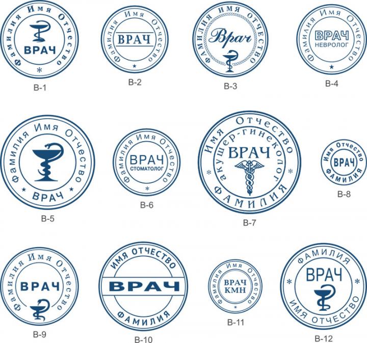 4) По желанию самого специалиста, на оттиске также может быть выполнен персональный логотип, медицинские символы и другие важные данные, связанные с его профессиональной деятельностью.
