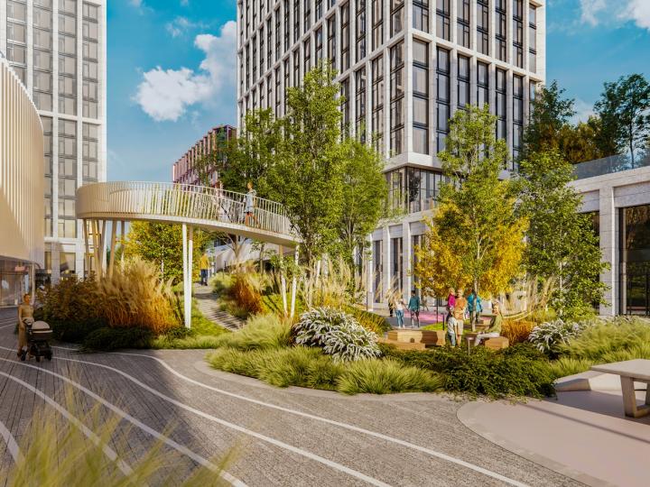 «Девелоперы премиальных комплексов все чаще создают собственные парковые благоустроенные пространства, — говорит Ирина Дзюба, заместитель генерального директора MR Group. — К примеру, в нашем комплексе Mod мы применили концепцию двухуровневого благоустройства. В проекте предусмотрен парящий мост, детские и спортивные площадки, зоны для отдыха и общения резидентов комплекса. Для всех жителей города мы создадим центральную городскую площадь, где можно будет встречаться, гулять, играть с детьми. Для разработки благоустройства мы привлекли бюро Kleinewelt Architekten, которое является автором всей архитектурной идеи проекта, что позволяет жилому комплексу сохранять единую концепцию от дальних видовых точек до деталей благоустройства».