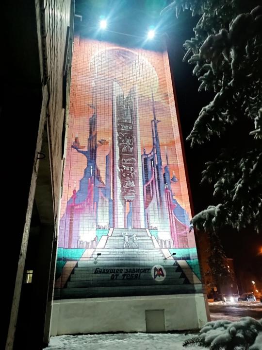 Удмуртэнерго подсветило мурал на корпусе аграрного университета