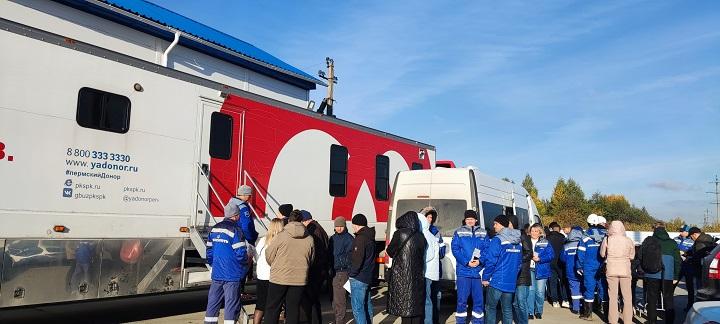 Пункт сбора был организован на производственной площадке «Осенцы» Пермского районного нефтепроводного управления (РНУ). Медицинское сопровождение осуществлялось специалистами передвижного мобильного комплекса ГБУЗ «Пермская краевая станция переливания крови».
