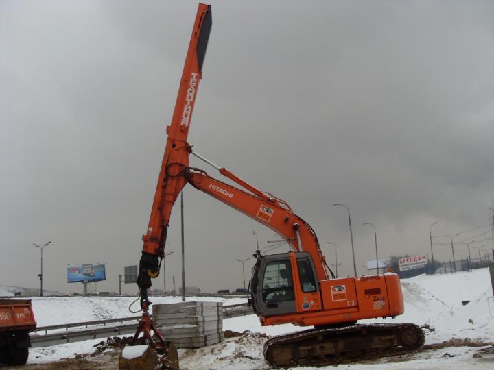 Компания Техоптимум-разработка котлована и вывоз грунта. Экскаватор грейфер Hitachi Zaxis 225 компании Техоптимум. www.tehoptimum.ru