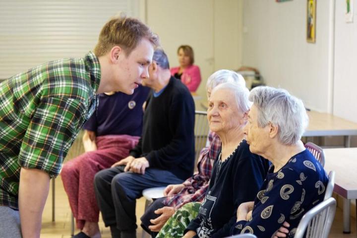 Группу кураторов и студентов Академии в приюте встретили тепло и радушно. В насыщенной программе от Елены Чудояковой, старшего преподавателя кафедры гуманитарных и естественнонаучных дисциплин, приняли участие все присутствующие. Дыхательная гимнастика, упражнениях для мелкой моторики, песни и танцы — вот неполный перечень активной части визита. Студенты охотно приглашали потанцевать бабушек и дедушек, а знаменитую «Катюшу» запевали все поколения.