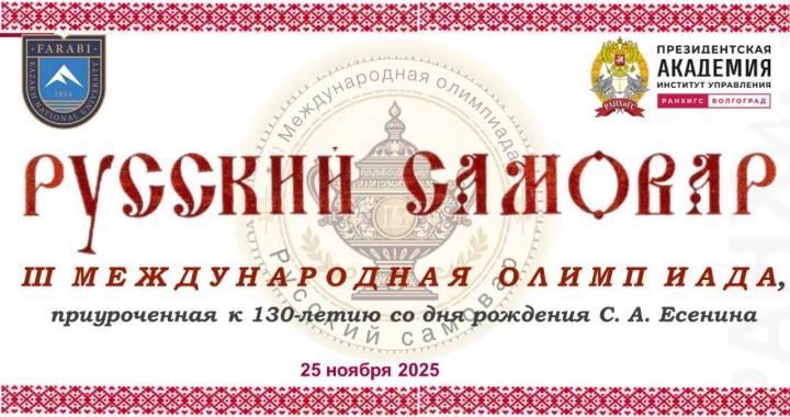 25 ноября 2025 года на базе Волгоградского института управления — филиала РАНХиГС пройдет III международная онлайн-олимпиада «Русский самовар», приуроченная к празднованию 130-летия со дня рождения великого русского поэта С.А. Есенина.