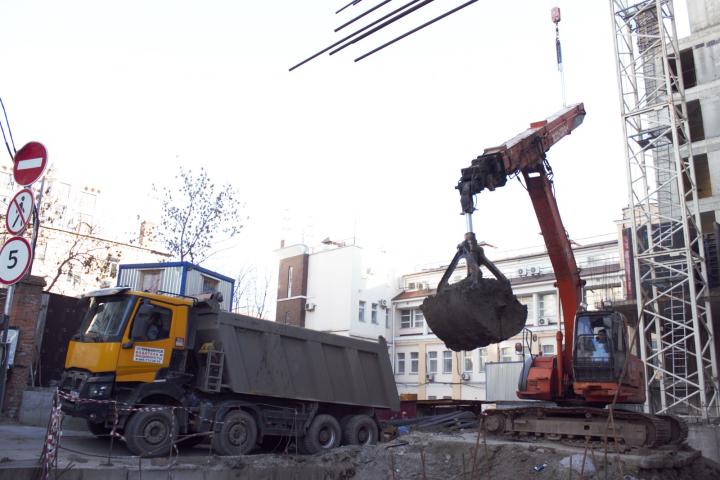 Компания Техоптимум-разработка котлована и вывоз грунта. Экскаватор грейфер Hitachi Zaxis 225 компании Техоптимум. www.tehoptimum.ru
